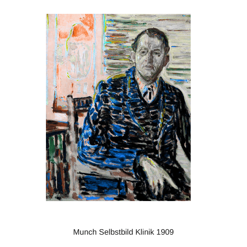 Es sind all diese Erfahrungen, die der Maler später in seinen Werken verarbeitet. Edvard selbst hat wahrscheinlich eine bipolare Störung, ist also manisch-depressiv. 1909 verbringt er lange Zeit in einer Nervenklinik.